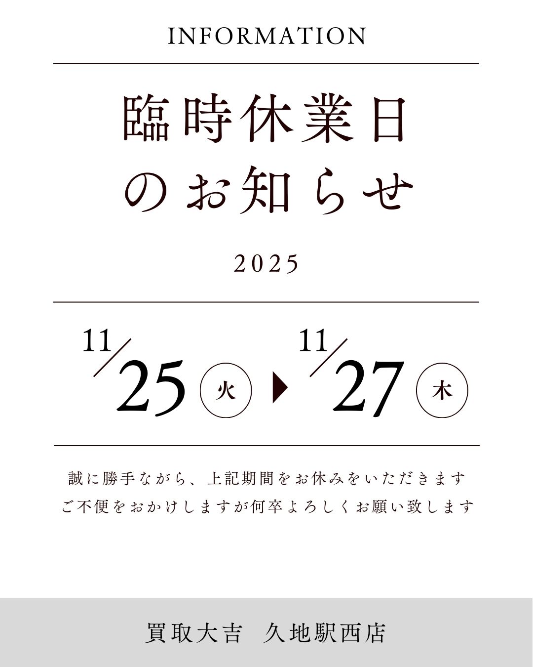 ※11/28(金)10時より通常営業いたします。